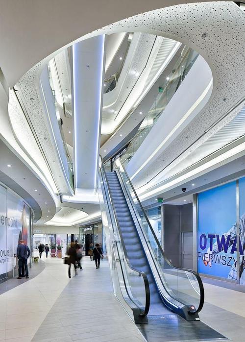 自動扶梯由梯路(變型的板式輸送機)和兩旁的扶手(變形的帶式輸送機)組成。其主要部件有梯級、牽引鏈條及鏈輪、導(dǎo)軌系統(tǒng)、主傳動系統(tǒng)(包括電動機、減速裝置、制動器及中間傳動環(huán)節(jié)等)、驅(qū)動主軸、梯路張緊裝置、扶手系統(tǒng)、梳板、扶梯骨架和電氣系統(tǒng)等。梯級在乘客入口處作水平運動(方便乘客登梯),以后逐漸形成階梯;在接近出口處階梯逐漸消失,梯級再度作水平運動。這些運動都是由梯級主輪、輔輪分別沿不同的梯級導(dǎo)軌行走來實現(xiàn)的。